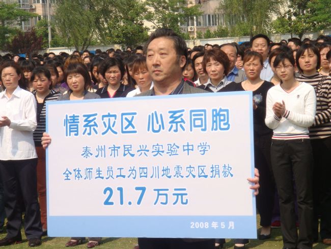 民兴中学全体师生为地震灾区捐款