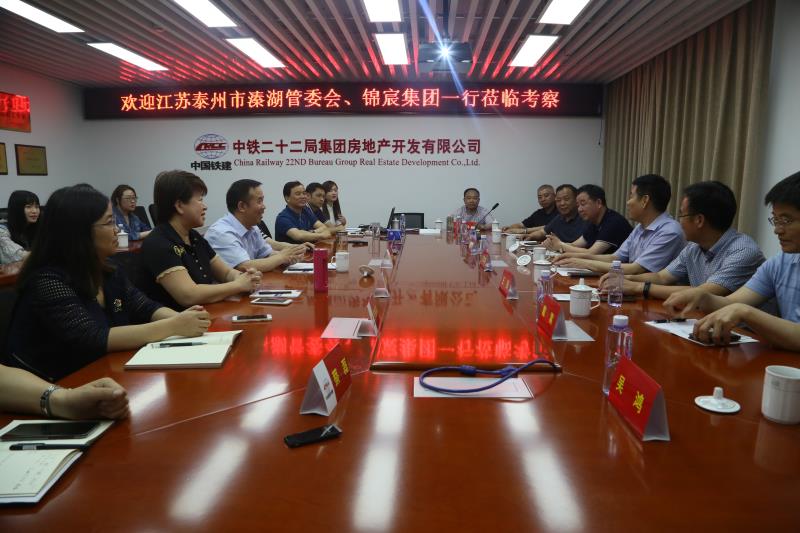 5月17日下午,溱湖旅游度假区管委会主任王荣明,凯发k8国际集团董事长李焕军、董事黄苏成、采购供应部部长翟步祥一行至中铁二十二局房地产公司考察调研,中铁二十二局集团公司副总经理、总会计师赵世友,集团地产董事长、党委书记熊乾,总经理陈慧英参加活动。