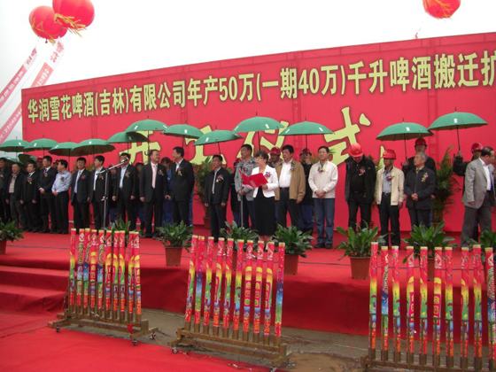 5月31日上午9时58分,华润雪花(吉林)啤酒有限公司50万千升/年(一期40万千升/年)搬迁扩建项目酿造综合楼基础工程举行隆重的奠基仪式,吉林市市长赵静波出席仪式。