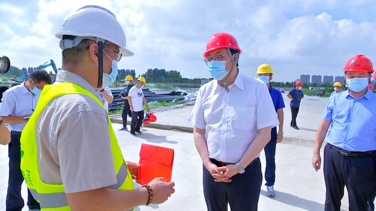 泰州体育公园是第二十届省运会开闭幕式和体育竞赛的重要场馆,目前体育场已完成全部工程量的87%,“三馆”综合体完成全部工程量的75%。在施工现场,朱立凡详细了解工程进度,同时向冒着酷暑高温工作的建设者们表示慰问和感谢,他说,体育公园是全市重点工程项目,希望大家在统筹抓好质量安全、做好防疫防暑的同时,合理安排调度,加快建设进度,确保场馆尽早投入使用。