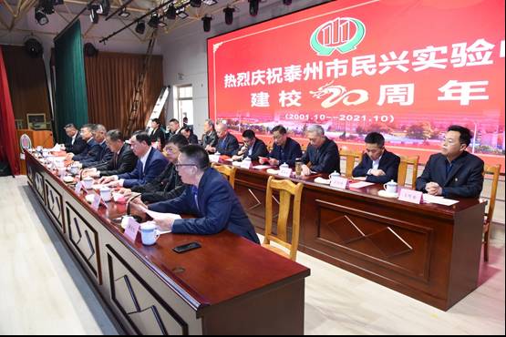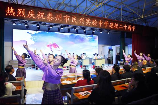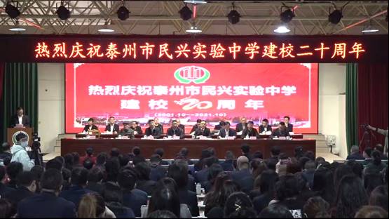 泰州市教育局副局长董健、海陵区副区长曹锦明、海陵区教育局局长姜小军、集团公司董事长、民兴实验中学董事长李焕军,学校相关负责人、学校董事以及多年来一直支持学校建设和发展的各界人士、老教师、历届校友、各年级家长代表,与全校师生欢聚一堂,共同庆祝学校成立20周年。