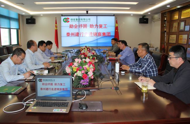 4月27日下午,中国建设银行泰州分行副行长刘汉文、公司部副总朱光才,姜堰支行行长邹旸、副行长张陵才一行至集团公司调研,深入了解企业受疫情影响情况和金融服务需求情况。