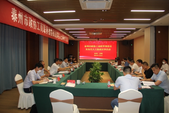 7月6日下午,泰州市政协工商联界别委员及知名人士协商议事活动在我区召开。泰州市政协第六届工商联界别委员,不是省工商联十二次会员代表大会代表的市工商联企业家副主席、副会长,市政协挂钩联系的相关同志等出席会议。泰州市委统战部副部长、市工商联党组书记、常务副主席陈军,区委常委、副区长赵进,区政协副主席、工商联主席戴忠全,集团公司董事长李焕军参加活动。