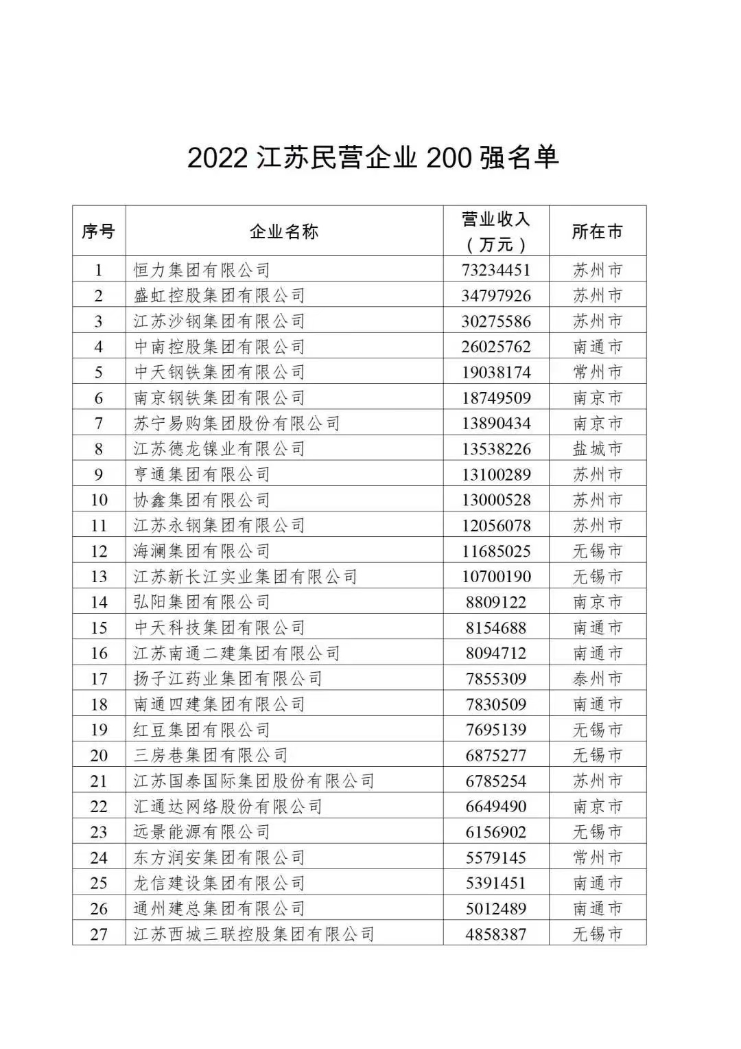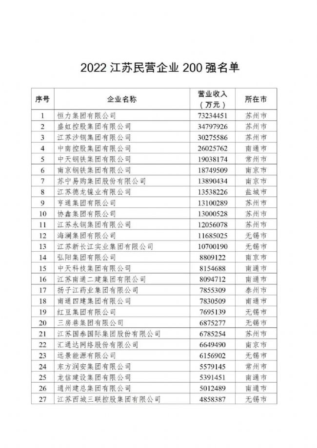 9月23日下午,江苏省工商联联合省科技厅、工信厅、生态环境厅和科学技术发展战略研究院举办2022江苏民营企业百强发布会,“2022江苏民营企业200强”揭晓,凯发k8国际集团有限公司位列榜单第163位。