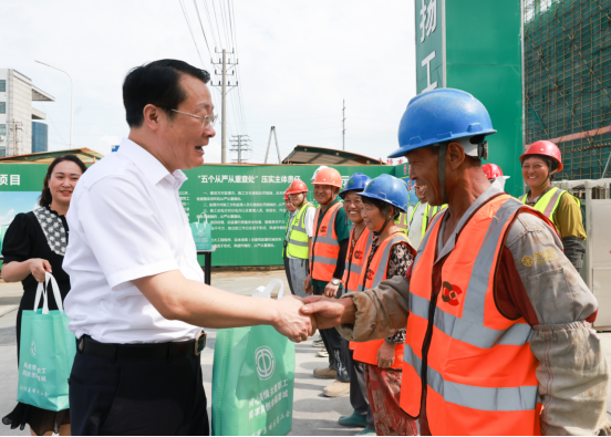 8月15日,区委书记方针来到我公司承建的太平洋新能源汽车项目建设现场,看望慰问坚守在一线的劳动者,并通过他们向全区广大劳动者表示亲切慰问和衷心感谢。