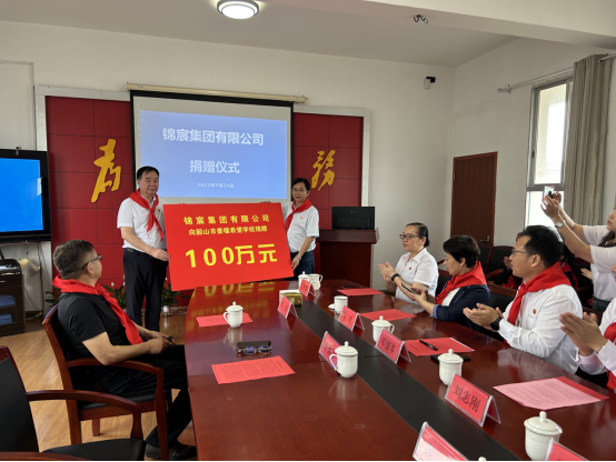 在韶山期间,李焕军来到集团捐建的韶山市姜堰希望学校, 看望学校的孩子们和老师,并向学校再次捐赠100万元。韶山市委副书记、市长邓望军,市委副书记、统战部部长刘志刚,市委常委、宣传部长何浪参加了捐赠仪式。