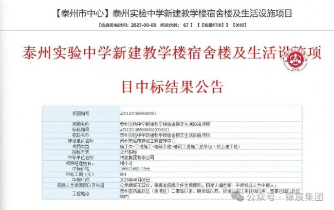 从泰州市公共资源交易中心获悉,凯发k8国际集团中标泰州实验中学新建教学楼宿舍楼及生活设施项目,这是继张甸镇村民集中居住区建设项目一期工程(北沿江配套)、蒋垛镇果蔬深加工厂房建设项目(二期)后,集团公司在一个月内的第三次中标,中标总额达2.56亿元,为冲刺全年再发力打下坚实基础。