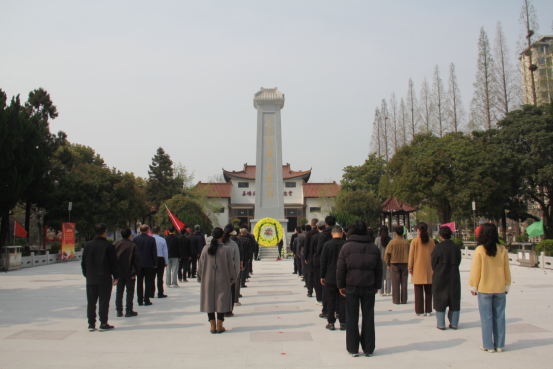 苍松翠柏掩映下,姜堰烈士陵园庄严肃穆,革命烈士纪念碑巍然矗立,诉说着革命先辈们不畏艰险、浴血奋战的峥嵘岁月。活动现场,全体参与人员整齐列队、神情肃穆,向革命烈士默哀致敬,深切缅怀为国家独立、民族解放和人民幸福英勇献身的革命先烈,表达对英烈的无限哀思与崇高敬意。随后,党员代表与职工代表缓步上前,向革命烈士纪念碑敬献鲜花,整理花篮缎带,以最质朴的方式寄托追思,告慰先烈英灵。