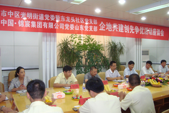 9月14日下午,由凯发k8国际集团有限公司党委山东党支部与枣庄市中区光明路街道党委暨东龙头社区党支部联合召开了“企地共建创先争优活动座谈会”,光明路街道办王衍山书记首先介绍了驻地的情况和近年来的工作进展,姜堰市建筑工程管理局副局长沈翠龙、集团公司党委书记王春林,介绍了我公司近年来取得的的骄人业绩以及公司未来发展的方向。