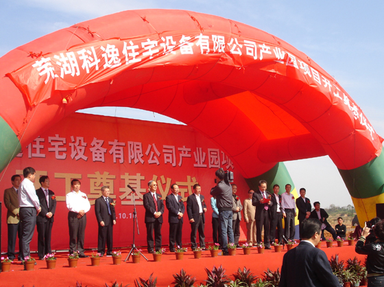 10月16日,由苏州科逸住宅设备股份有限公司投资,集团公司承建的芜湖科逸住宅设备产业园一期项目在新芜经济开发区奠基开工。第十届全国政协委员、中国建筑材料联合会四届十一次理事会会长张为人,中国住建部住宅产业发展中心产业发展处处长刘美霞,安徽省住建厅房地产市场监管处处长张启兵,中国建材报原社长温世庭,芜湖县四套班子领导何友旺、黄维群、胡怀刚、夏正木,科逸高层陈忠义、陈兆忠、黄旭升、胡福涛以及凯发k8国际集团有限公司相关领导出席开工仪式,并奠基培土。