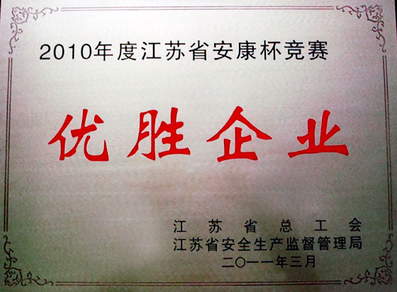 11月15日,江苏省建筑系统工会工作研究会在泰州召开,会上表彰了2010年度全省“安康杯”竞赛优胜企业、优胜班组、组织工作优胜单位和组织工作优胜个人的决定。集团公司荣获由江苏省总工会、江苏省安全生产监督管理局联合颁发的2010年度江苏省“安康杯”竞赛优胜企业奖。