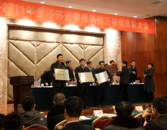 会议对2011年度江苏省进鲁施工先进集体和先进个人进行了表彰。凯发k8国际集团山东分公司荣获“江苏省进鲁施工先进单位”称号;刘亚明项目部荣获“先进项目部”称号;唐金来、李德章等四位同志荣获“2011年度江苏省进鲁施工企业优秀建造师”称号;蒋万泉、李焕发同志被评为“安全生产、质量管理先进个人”。山东分公司全体人员将以此次会议为起点,认真做好各项工作,为公司的发展再作新贡献。