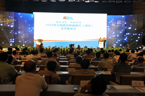 会上,江苏省住房城乡建设厅厅长周岚、副厅长徐学军与海南、广东、福建三省住房城乡建设部门分别签订了加强建设领域战略合作的框架协议;10个推介企业代表登台发言,与会全体企业负责人集体上台亮相,并与领导合影留念。