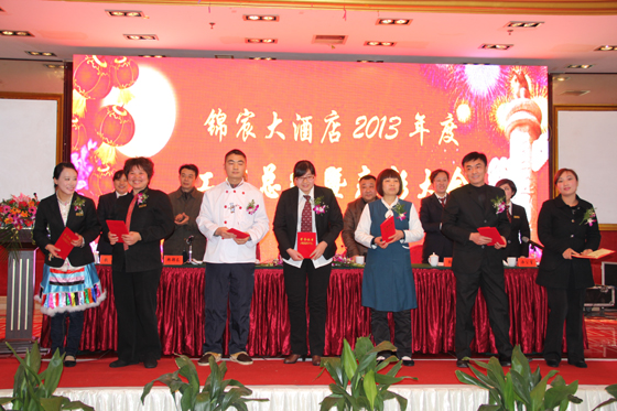 会上酒店对2013年度的优秀员工进行了表彰。酒店副总经理张跃琴作了2013年度工作报告,总结过去,计划未来。随后,集团公司党委书记王春林同志对酒店发展提出了新的要求,他期望酒店在新的一年里,要围绕“提升业务水平、完善制度建设、发展餐饮特色、加强能源管理、转变营销思路、抓牢安全工作”等六个方面,实行精细管理,扎实练好内功,努力打造具有“凯发k8国际”特色的餐饮企业。