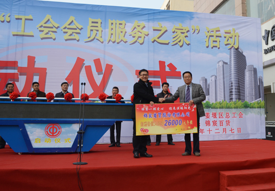 活动启动仪式上,凯发k8国际百货向全区会员职工捐赠价值26000元的物品。侯亚军总经理代表成员单位发言,他说:“凯发k8国际百货作为协办单位将全力支持活动的开展,精心打造会员服务之家,真正让利于广大会员,将凯发k8国际百货办成工会会员的贴心之家。”