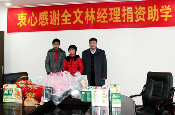号上午,集团公司华东区域(临时)党支部书记全文林同志践行“学雷锋”行动,以个人名义前往民兴中学看望贫困学生葛亚萍、范洪林,并到张甸镇杨港村慰问孤寡残疾老人穆同喜,为他们送去了慰问金和慰问品。