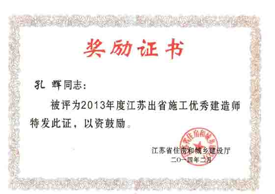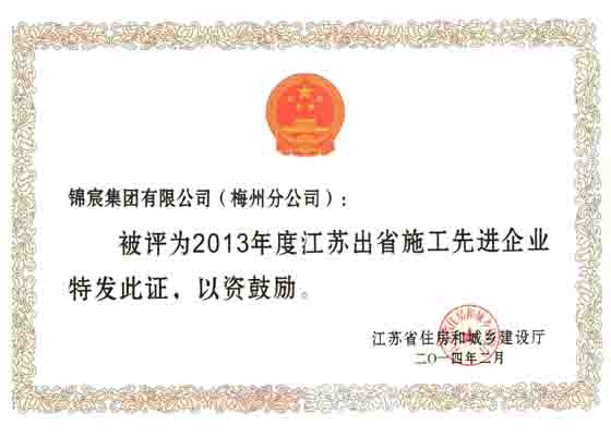 425, 省住建厅在珠海召开“2013年度江苏进广东、广西、福建、海南施工工作会议”,对2013年度江苏进广东、广西、福建、海南施工先进企业及个人予以表扬通报。集团公司被评为“江苏进广东、广西、福建、海南施工先进企业”,广东分公司孔辉同志被评为“优秀建造师”。