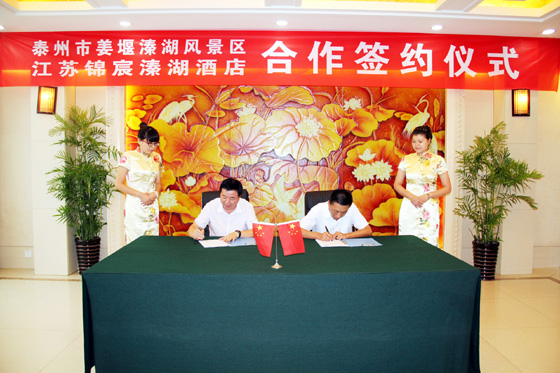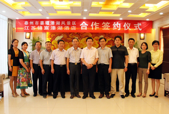 9月2日,泰州市姜堰溱湖风景区与江苏凯发k8国际溱湖酒店有限公司的合作签约仪式在溱湖会务中心举行。溱湖风景区管委会党工委书记、主任秦永金及管委会领导班子,溱湖风景区开发建设有限公司王剑经理,集团公司董事长李焕军、党委书记王春林,江苏凯发k8国际溱湖酒店有限公司总经理梅林女士及管理班子主要成员出席签约仪式。