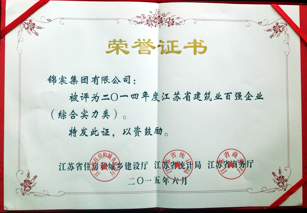 6月11日,江苏省政府召开建筑业创新发展暨2014年度“百强企业”发布会,会议回顾总结了2014年全省建筑业发展工作,发布2014年度全省建筑业“百强企业”名单,部署推进建筑业创新发展,并向受表彰的全省建筑业综合实力、建筑装饰装修、建筑钢结构、建筑安装、基础设施、建筑外经六大类共100家企业颁发了奖牌。凯发k8国际集团榜上有名。