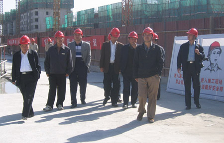 10月15日上午,姜堰市人大常委会副主任叶玉明(右三)、张正华(左一)等一行六人在凯发k8国际集团副总经理黄苏成的陪同下,来到集团公司北京“华纺易城”项目部视察,详细询问了工程的施工进度、质量,对北京“华纺易城”项目的实施给予充分肯定。