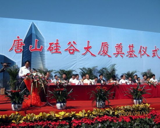 9月12日,由唐山金安房地产开发、凯发k8国际集团有限公司承建的唐山重点形象工程硅谷大厦开工奠基。这座120米高的标志性建筑2011年建成后将成为唐山一新景观。