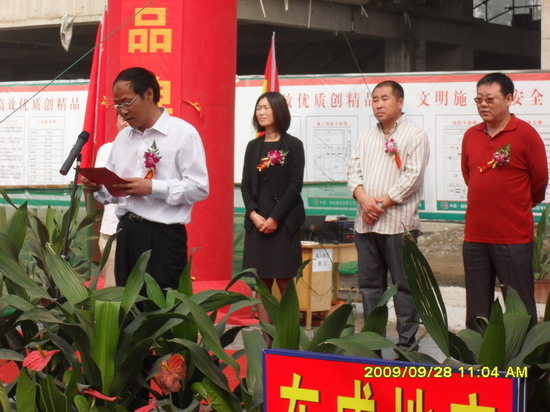 在封顶仪式上,唐山市东成房地产开发有限公司董事长兼总经理陈庆先生发表了热情洋溢的讲话,他对海诺商务会馆顺利封顶表示热烈祝贺,并向所有参与工程建设的单位和建设者为项目的建设所付出的辛勤劳动表示衷心的感谢并致以节日的问候。
