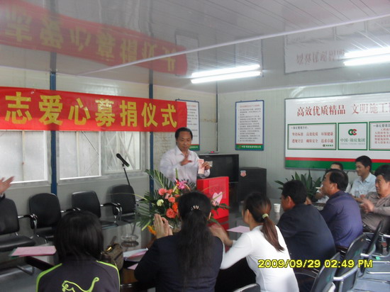 图为唐山分公司李德林经理正在组织员工捐款