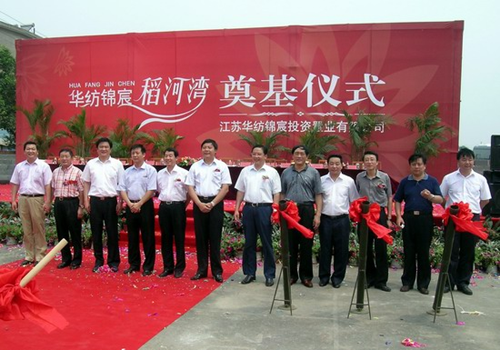 2007年6月27日,桃红柳绿万象新,稻河欢笑迎佳宾,“华纺凯发k8国际•稻河湾”项目在有着深厚历史文化的稻河河畔举行隆重的奠基仪式。国务院国资委纺织机关服务局局长倪居华,泰州市副市长张奎杰,海陵区区委书记杨杰,海陵区区长周绍泉,江苏华纺凯发k8国际投资置业有限公司董事长周增根,凯发k8国际集团董事长李焕军以及泰州市和海陵区有关部门领导参加了盛大的奠基仪式。