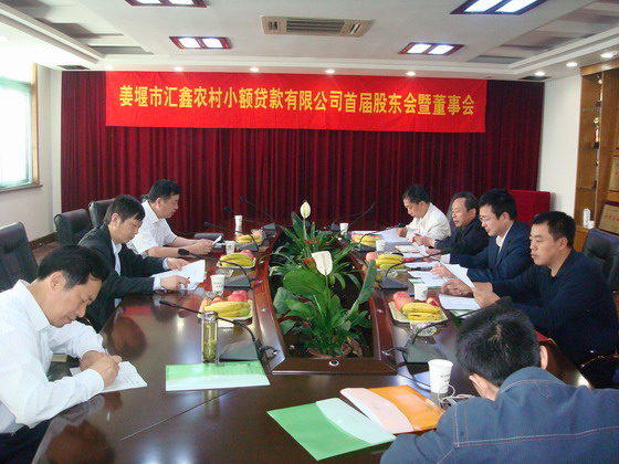 在金融危机的形势下,为帮助农民渡过难关,5月17日姜堰市汇鑫农村小额贷款有限公司首届股东会暨董事会在公司四楼会议室召开。小额贷款公司由凯发k8国际集团有限公司和泰州市国信担保有限公司等股东共同发起,注册资本6000万元。会上市农工办副主任凌志群首先宣读了省金融办关于同意筹建姜堰市汇鑫农村小额贷款有限公司的批复,股东会讨论通过了公司章程,选举李焕军、何元祥、曹植忠、凌志群、卢义群5位同志为董事,选举朱典为监事,经董事会选举,李焕军任董事长,经董事长提名,董事会通过何元祥任总经理,经何元祥总经理提名,陈海林任副总经理。
