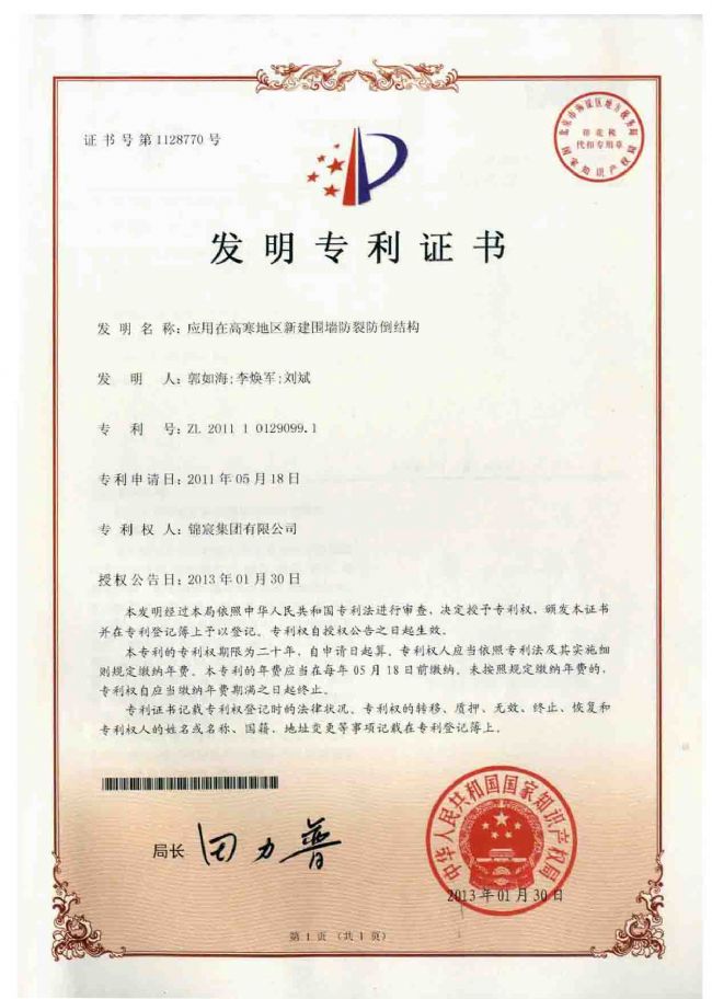 本发明是一种应用在高寒地区新建围墙防裂防倒结构,它包括墙体、墙垛、底梁、砂层、底座和地基。所述墙体、墙垛和底座均为垒砌结构。所述底粱为钢筋混凝土预制件,底梁为直杆梁或圆弧梁。底座用毛石垒砌在地基中,周边外粉砂浆及沥青构成防水层,沥青层与地基之间由砂层相隔构成应力吸收结构,在相邻两座堆垛底端同一水平线上架设底梁。底梁中部底面距地基上表面有一段距离,在底梁和底座上分别同步砌墙体和堆垛。本发明将墙体直接砌在底染上,即使地基结冰产生外胀力也不会作用到墙体,故墙体不会产生应力裂纹,更不可能被应力推倒,所以新建的围垴稳固,次年没有返修、重建之忧。
