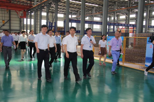 7月21日下午,市委副书记、市长史立军带领B组与会人员观摩江苏宇辉住宅装配式建筑PC构件项目,史市长详细了解了公司生产流程以及工艺特点,对目前装配式构件在市场上的应用前景表现出浓厚的兴趣,在布料机和振捣台前,史市长了解到这里可实现搅拌、运输、卸料、振捣一体化操作,整个过程只需一名工人进行操作,他十分高兴,希望企业继续在智能化生产上多下功夫。