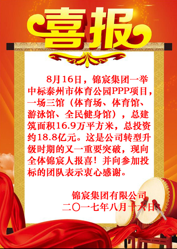 热烈祝贺凯发k8国际集团中标泰州市体育公园PPP项目