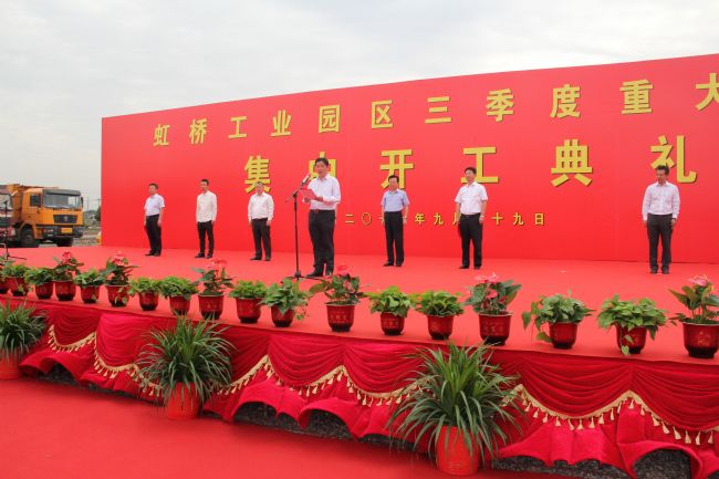 泰兴市委常委、常务副市长刘荣华在开工仪式上致辞,刘荣华指出,新开工的项目投资体量大,产业带动性强,项目建成后必将进一步提升园区的影响力和竞争力,加快园区转型升级步伐,推动园区又好又快发展,他要求虹桥工园区和市相关部门要发扬“店小二”精神,加强协调配合,进一步优化提升服务水平,全力营造“亲商、安商”的良好环境,主动高效协调解决好项目建设过程中遇到的各类矛盾和问题,力促项目快建设、快竣工、快投产,早日形成新的经济增长点。